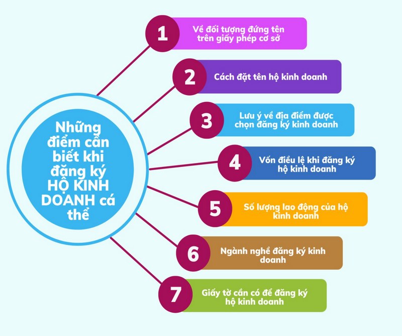 Ngoài ra, cá nhân đăng ký không được thuộc các trường hợp bị cấm kinh doanh theo quy định của pháp luật. Mỗi cá nhân chỉ được đứng tên một hộ kinh doanh trên phạm vi toàn quốc, tuy nhiên vẫn có thể góp vốn vào doanh nghiệp khác với tư cách cá nhân.